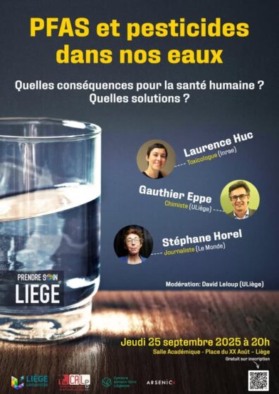 L’échange, autour des conséquences des pesticides, PFAS et autres polluants chimiques sur la santé humaine, sera introduit et animé par David Leloup, chargé de cours en journalisme à l’ULiège.